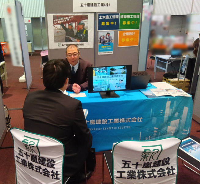 全63社が集結する中で、五十嵐建設工業のブースにも多くの学生さんにお立ち寄りいただきました!