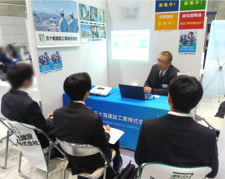 当社ブースには、土木・建築志望の学生はもちろん、他分野を専攻する学生の皆さんからも